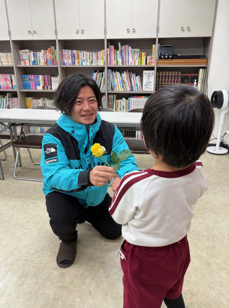 2月16日、入舟寮にバラ王子がプレゼントを届けに来てくださいました! 誕生月のこどもたちにバラをプレゼントしてくださるという、とっても素敵な活動をされています。