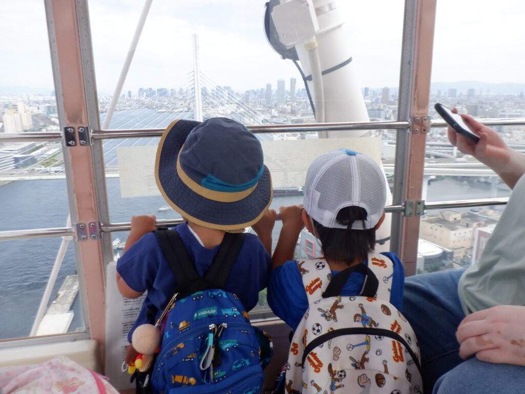 海遊館のあとは大観覧車がお出迎え、みんな初めての観覧車でドキドキ💓