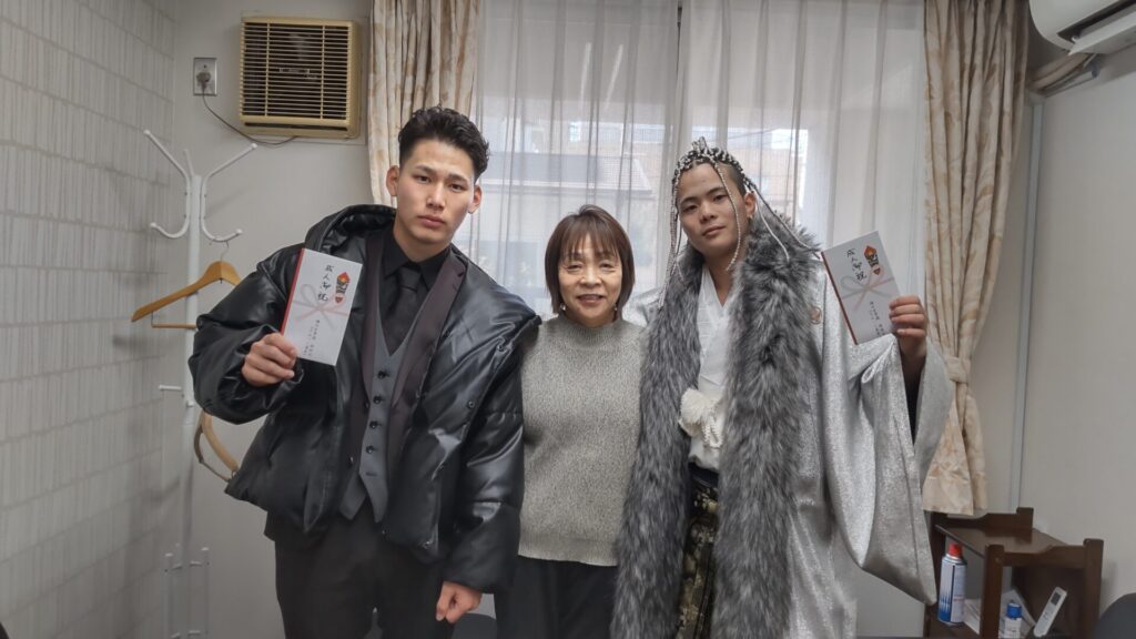 令和8年1月11日(土) アートホテル大阪ベイタワーで『港区成人の日の集い』が行われました。入舟寮の卒業生2名も参加し晴れ姿を入舟寮に見せに来てくれました。